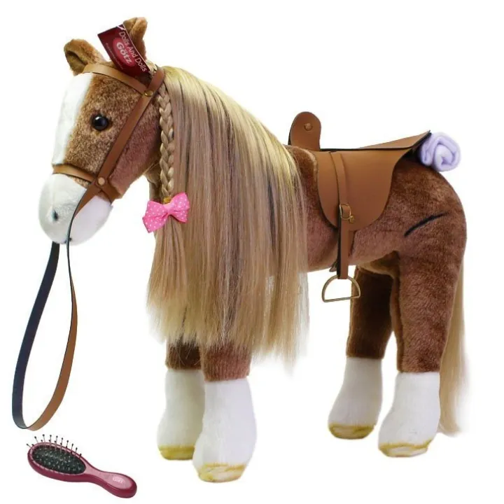 Comprend un cheval en peluche avec une selle, une bride et une couverture de pique-nique.