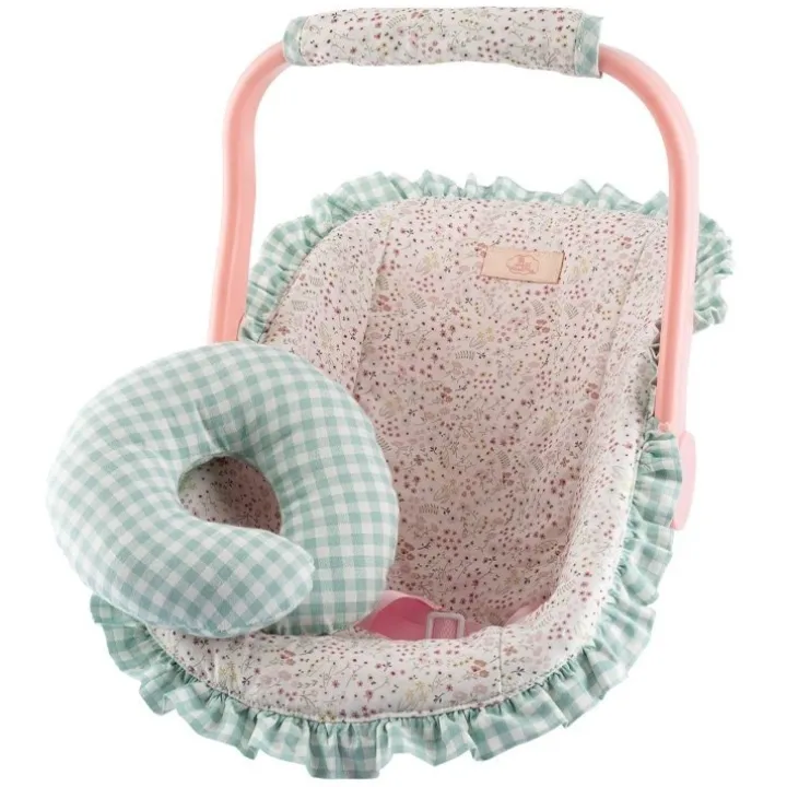 Tissu en coton, double volant en tissu et coussin rempli de miraguano pour le nuque.