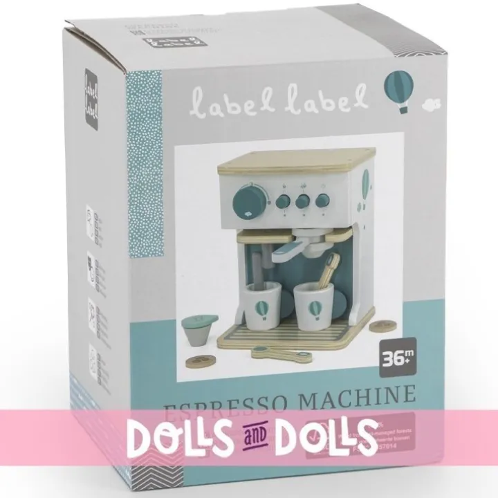 La machine à espresso Label Label a l’air d’une vraie machine et fonctionne comme une vraie… Mettez les grains de café dans le portafiltre, réglez la force du café, 1 tasse ou 2 tasses… faites du café ! En guise de touche finale, vous pouvez créer une mousse de lait magique en utilisant le tuyau à vapeur. La machine Espresso est livrée avec 2 tasses avec cuillère, une tasse à lait et 3 dosettes de café.