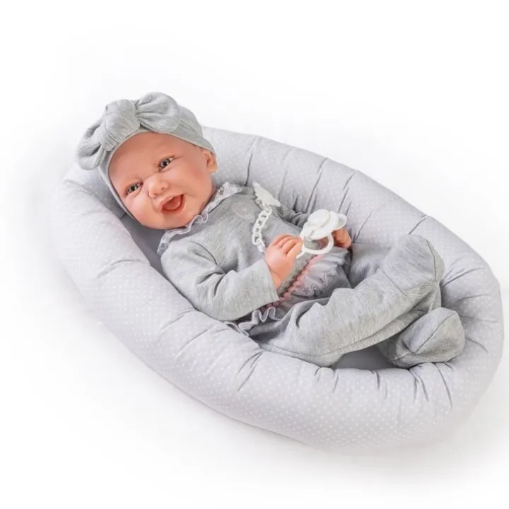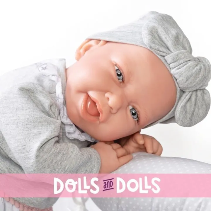 Le poids d’une poupée Newborn de 42 cm par Antonio Juan est compris entre 0,90 et 1,10 kg (1,98 et 2,43 lb) environ, selon ses vêtements.