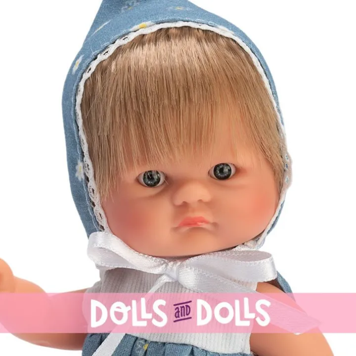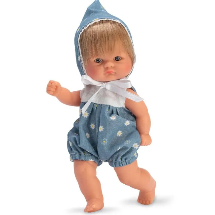Magnifique baby doll de la marque Así. Il mesure 20 cm et a des membres et un corps en vinyle. Il a aussi des cheveux implantés.