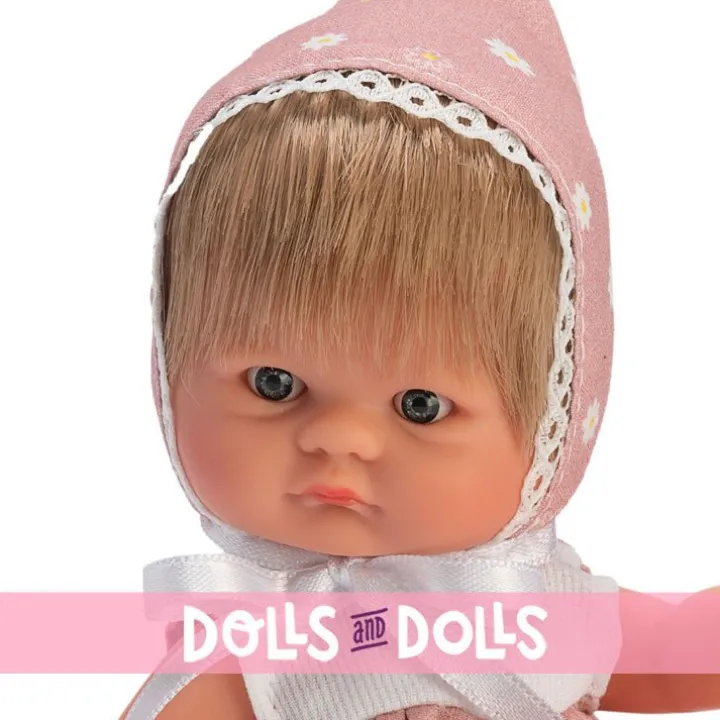 Magnifique baby doll de la marque Así. Il mesure 20 cm et a des membres et un corps en vinyle. Il a aussi des cheveux implantés.