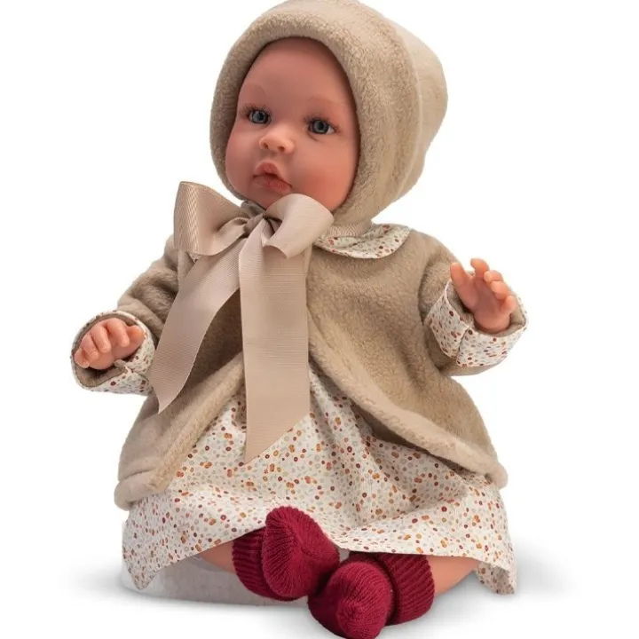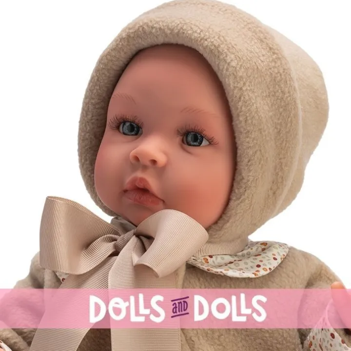Ce beau bébé de la marque de poupées Así mesure 46 centimètres et pèse environ 0,85 kg. Il a des membres en vinyle et un corps en tissu rempli de kapok.