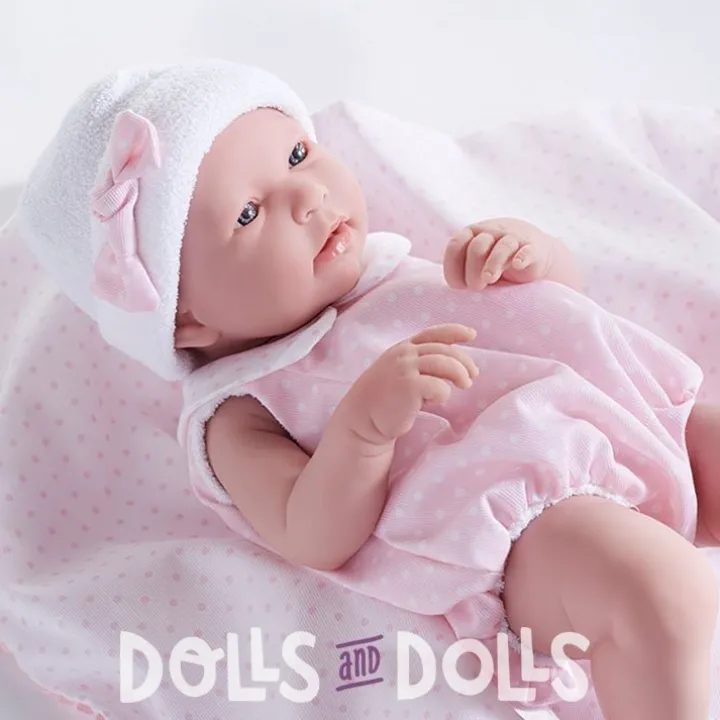 Elle est magnifique avec sa barboteuse à pois roses et blancs. Son chapeau et ses bottines sont idéaux. Lorsque vous allez vous promener avec elle, vous la couvrirez de sa couverture et ainsi elle ne se refroidira pas.
