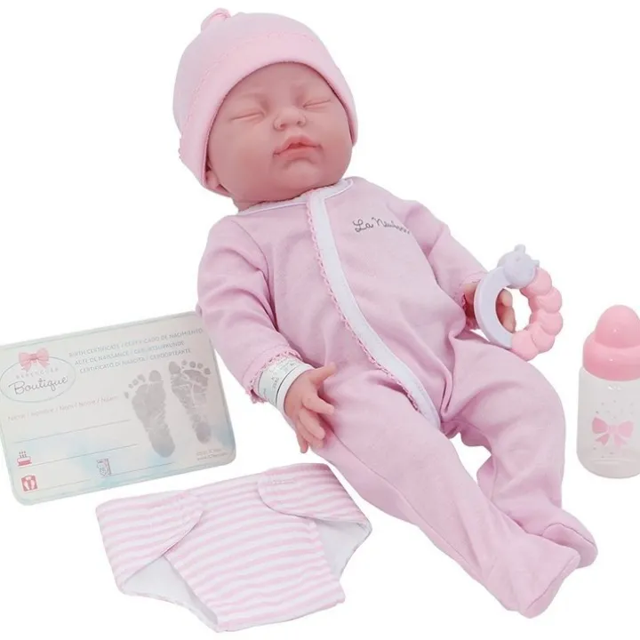 – Comprend un biberon, un bracelet d’hôpital, un certificat de naissance, un hochet et une couche.