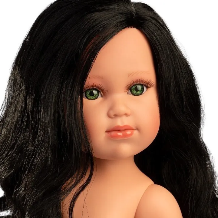 Cette poupée a de magnifiques cheveux noirs extra longs et ondulés. Ses yeux sont verts.