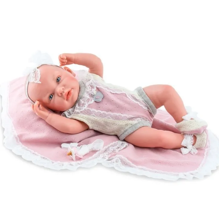La belle Ane Baby Petite Pomme est l’une des poupées 45 cm de la marque Marina & Pau. Son visage est très adorable et elle porte une tenue très mignonne. Elle a un corps en vinyle qui convient à la baignade, vous pouvez donc toujours vous amuser avec elle. De plus, son corps est articulé, ce qui lui permet d’adopter les postures d’un vrai bébé.