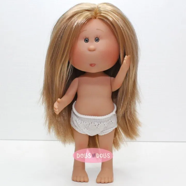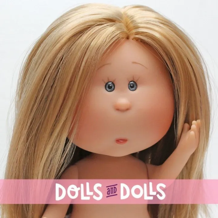Achetez la poupée Mia de la marque Nines d’Onil. Cette poupée a les cheveux blonds et les yeux gris.