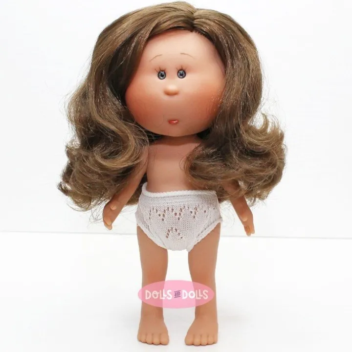 Achetez la poupée Mia de la marque Nines d’Onil. Cette poupée a les cheveux bruns et les yeux gris.