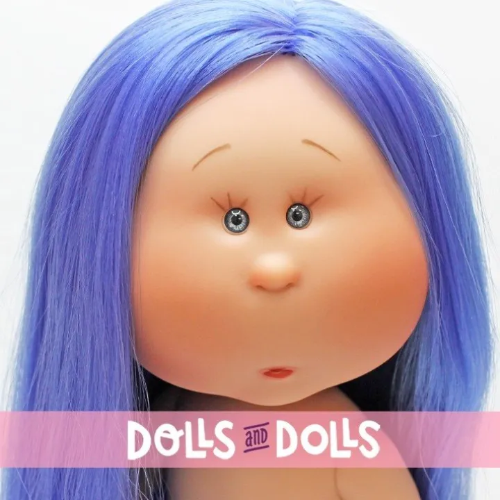 Achetez la poupée Mia de la marque Nines d’Onil. Cette poupée a les cheveux bleus et les yeux gris.