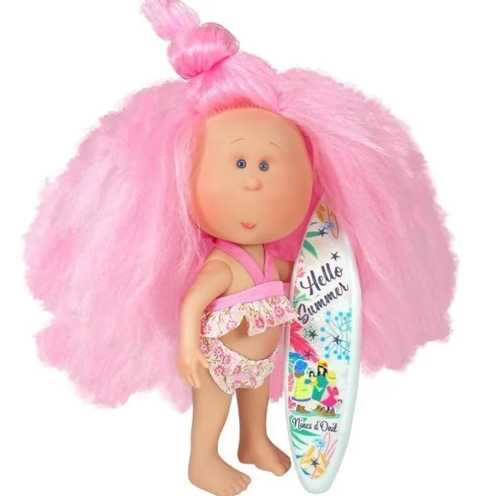 Achetez la poupée Mia de la marque Nines d’Onil. Cette poupée a les cheveux roses et les yeux gris.