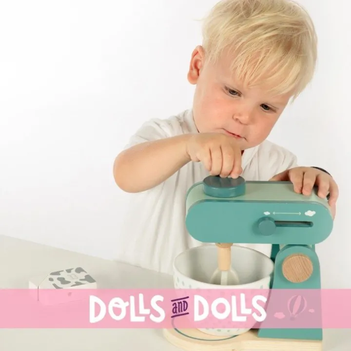 Ce robot de cuisine Label Label est exactement ce dont les petits chefs ont besoin pour donner vie à leurs créations imaginaires. Le batteur se lève pour permettre d’ajouter tous les ingrédients dans le bol à mélanger. Redescendez-le et mélangez ! En tournant le levier situé en haut, le robot mélange tous les ingrédients. Le curseur permet de régler la vitesse de mélange. Le plaisir de cuisiner est assuré ! Le set est complet avec les accessoires inclus : un œuf à casser et bien sûr une briquette de lait à ajouter à la pâte.