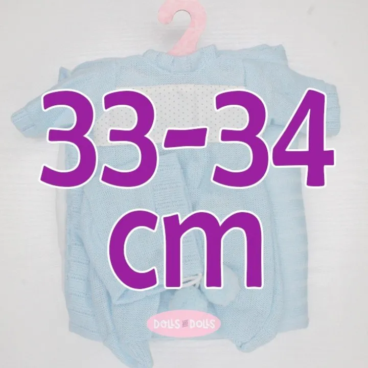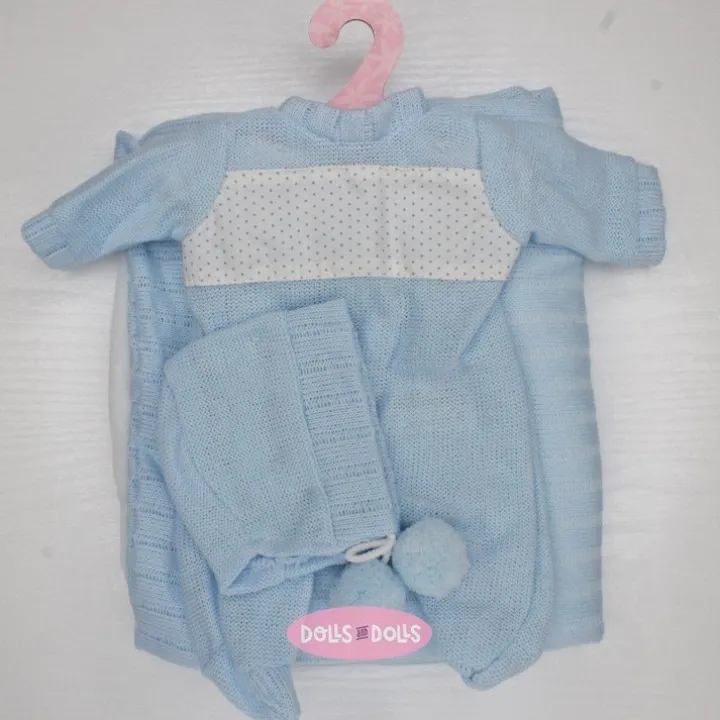 Tenue pour poupée Antonio Juan 33-34 cm - Barboteuse bleue à pois avec bonnet et châle