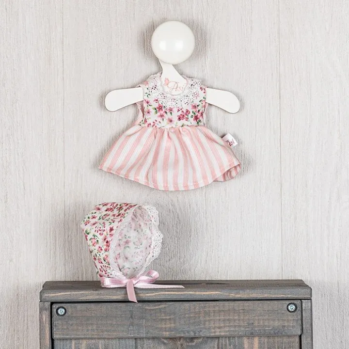 Tenue pour poupée Así 20 cm – Robe rayée rose avec poitrine fleurie pour poupée Bomboncín