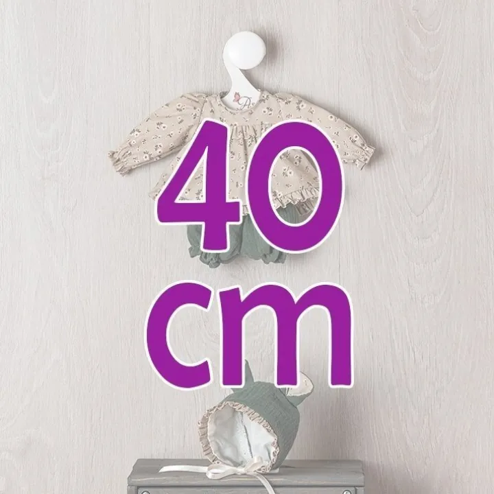 Tenue pour poupée Así 40 cm - Petit bonnet à oreilles avec fleurs vertes ensemble de robe pour poupée Sabrina