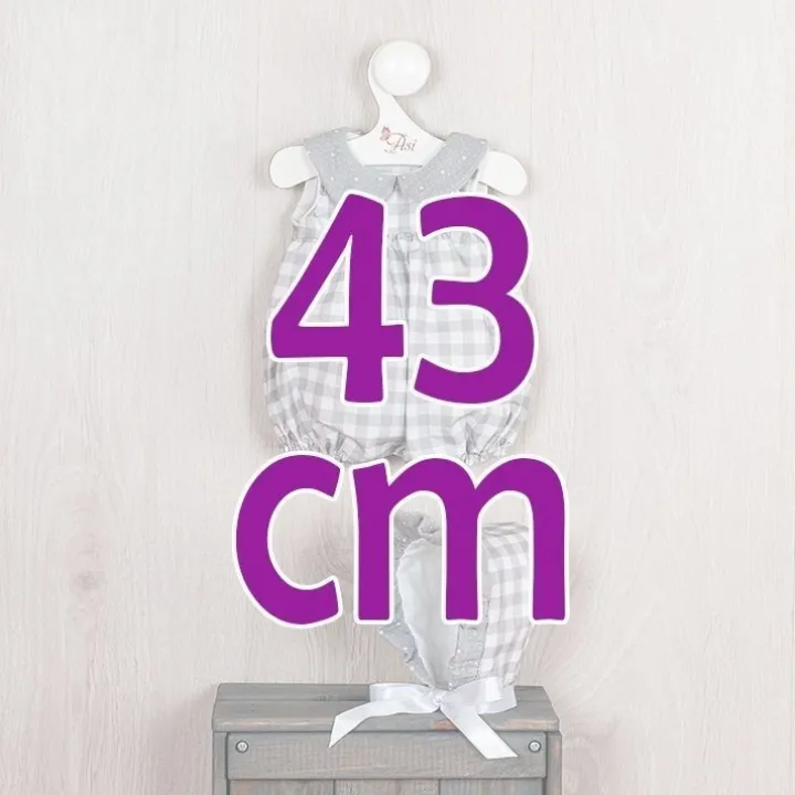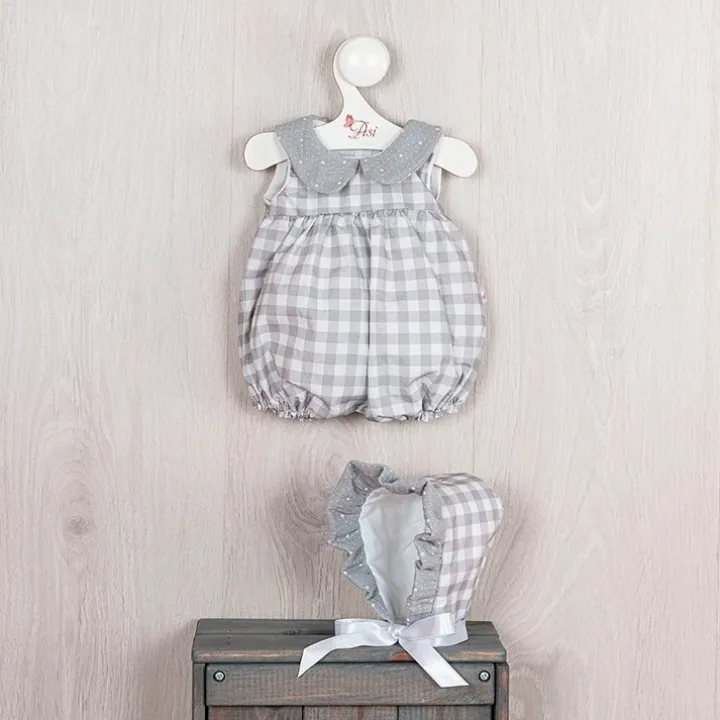 Tenue pour poupée Así 43 cm – Robe à carreaux gris avec pololo et col en mousseline grise pour poupée Pablo