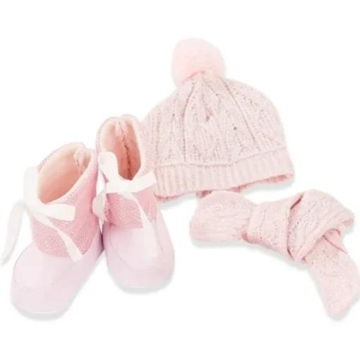 Votre poupée attend l’hiver. Ce n’est pas étonnant car cet ensemble est si chic qu’il rend chaque tenue spéciale. Le bonnet et l’écharpe sont tricotés dans un joli motif tressé avec de fines fibres de lurex et même ces bottes cool scintillent. Un superbe ensemble pour vous garder bien au chaud de manière chic.