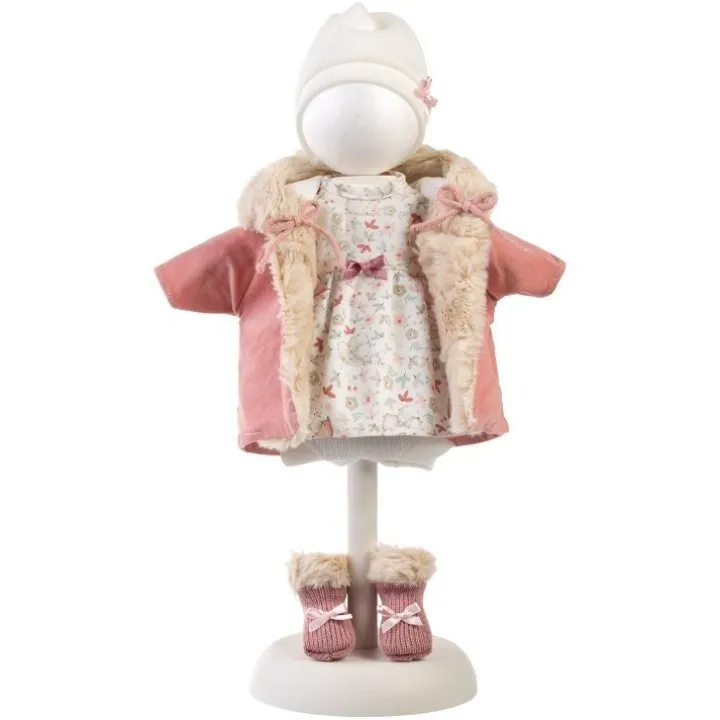 Vêtements pour poupées Llorens 35 cm – Ensemble nature avec veste et chaussettes roses et bonnet blanc